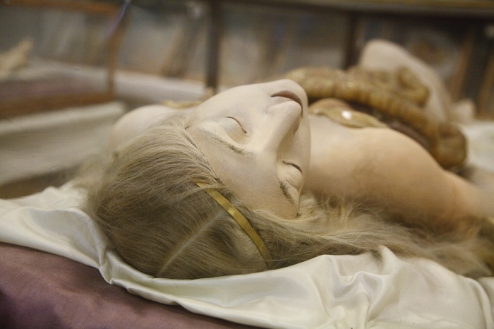 "해부 비너스"로 불리는 이 밀랍 인형은, 이탈리아의 조각가 클레멘테 수시니(1754~1814)가 제작 한 것이다. 그가 다룬 르네상스 회화와 같은 미녀의 인체 해부 밀랍 인형은, 의사와 아티스트 모두에게 환영을 받았다.